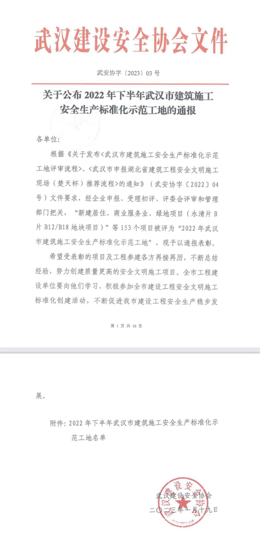 1月30日,安裝公司承建的湖北工建機(jī)電科技產(chǎn)業(yè)園項(xiàng)目榮獲“武漢市建筑施工安全生產(chǎn)標(biāo)準(zhǔn)化示范工地”,公司標(biāo)準(zhǔn)化工地創(chuàng)建工作再創(chuàng)佳績。