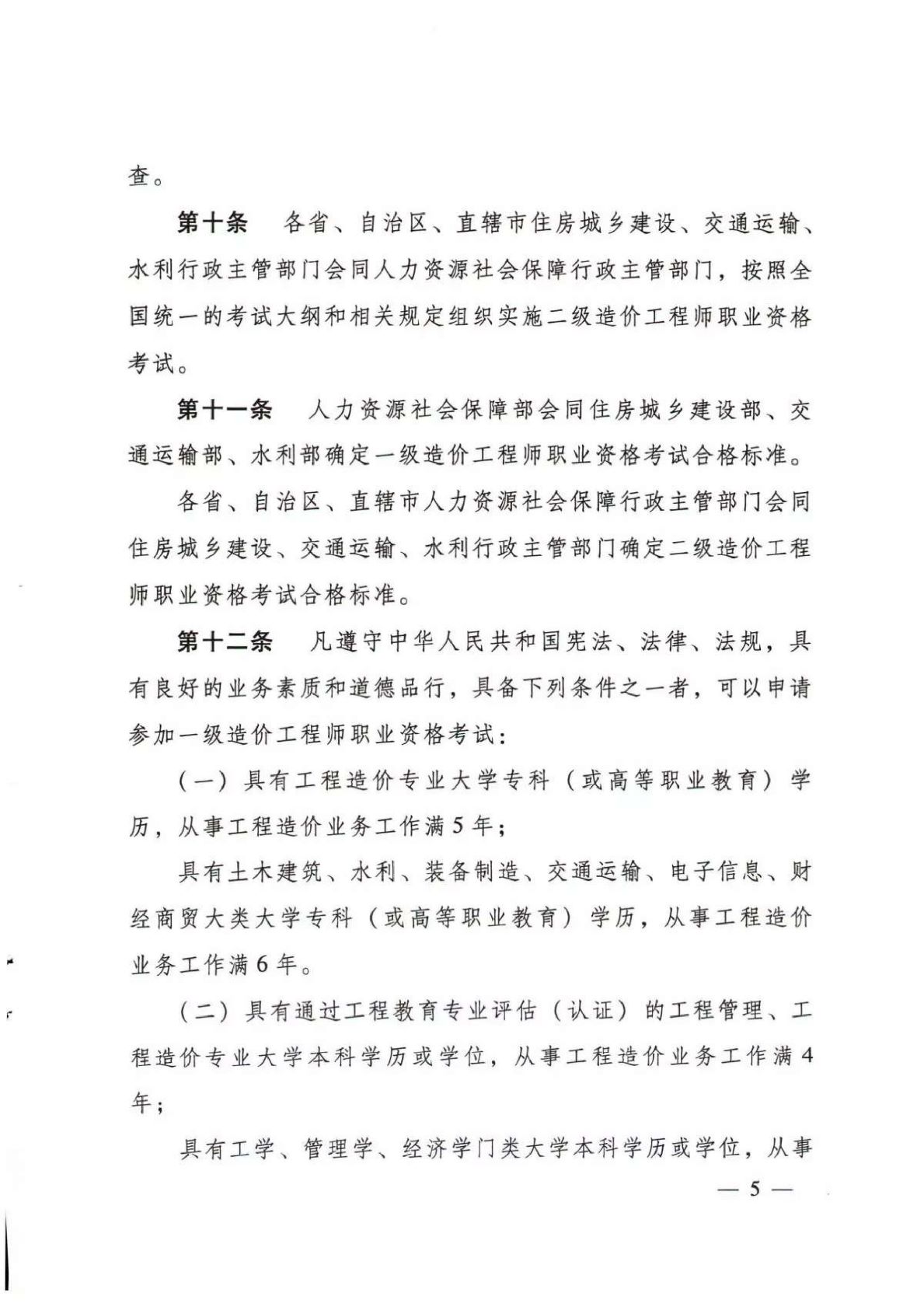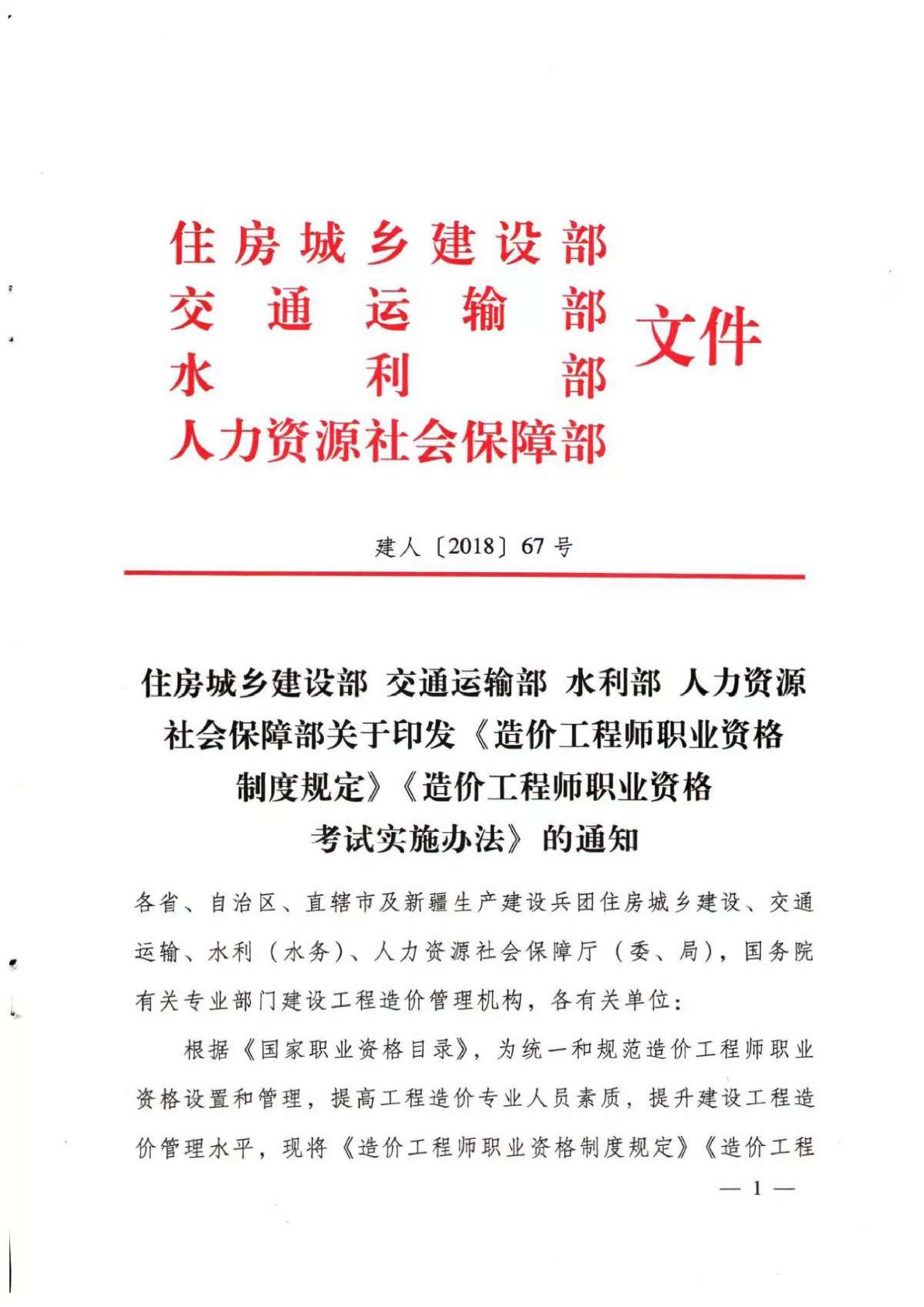 住房城鄉(xiāng)建部 交通運(yùn)輸部 水利部 人力資源社會(huì)保障部關(guān)于印發(fā)《造價(jià)工程師職業(yè)資格制度規(guī)定》《造價(jià)工程師職業(yè)資格考試實(shí)施辦法》的通知